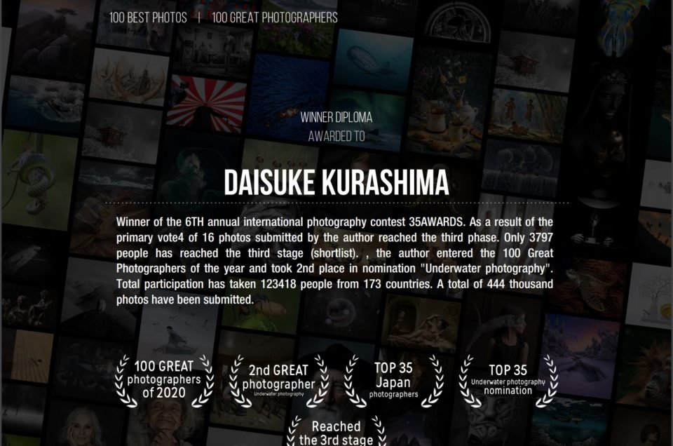 水中写真カテゴリーにおいては、”100 BEST PHOTOS”は日本人としては初の上位3席入賞で、過去最高位だったようです。