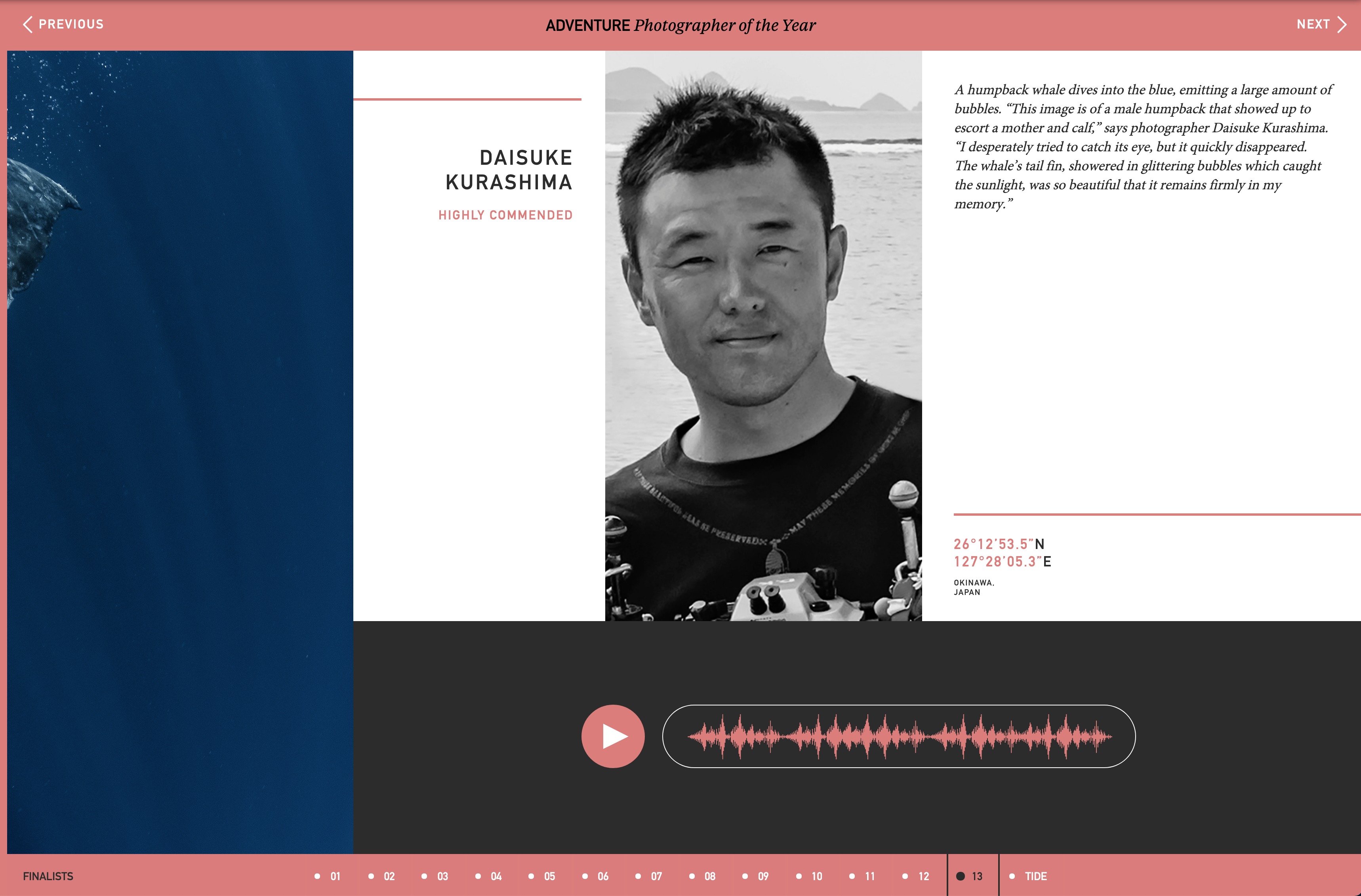 発表開始と同時に、各カテゴリーで最終ラウンドまで進んだ作品の中からノミネートされた作品トップ100を見ることができるのですが、実はここに表示されている時点で、”100 BEST PHOTOS”の選外となったことを意味しています。