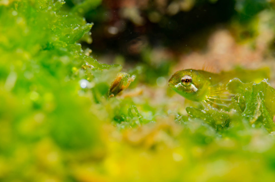 これが普通の岩場とかだときっと見向きもしないのだろうけど、アオサと光合成の泡と組み合わせると可愛らしい画になると思った。